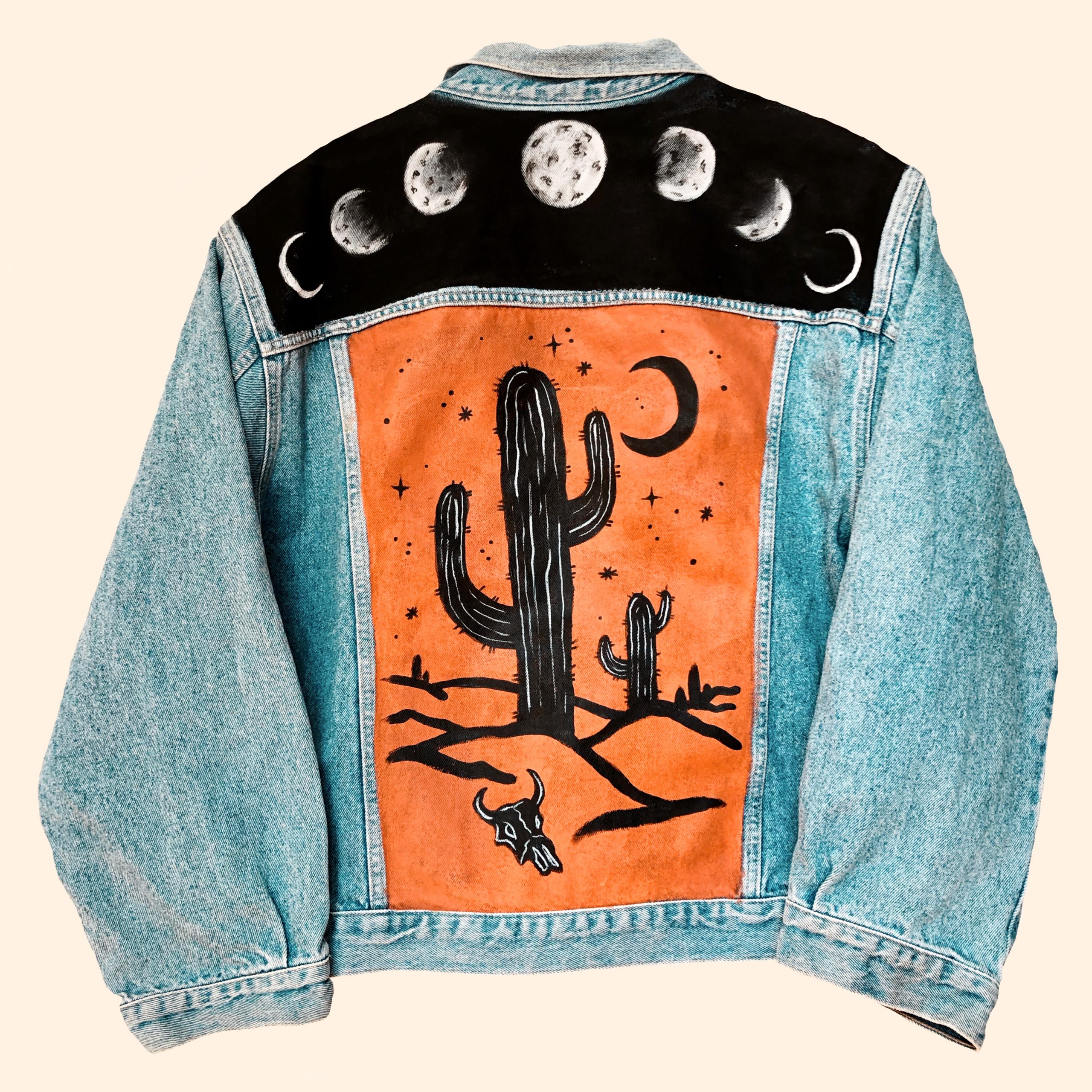 Handpainted denim jacket Moonphase Valley, roaming the desert like a gypsy woman ?