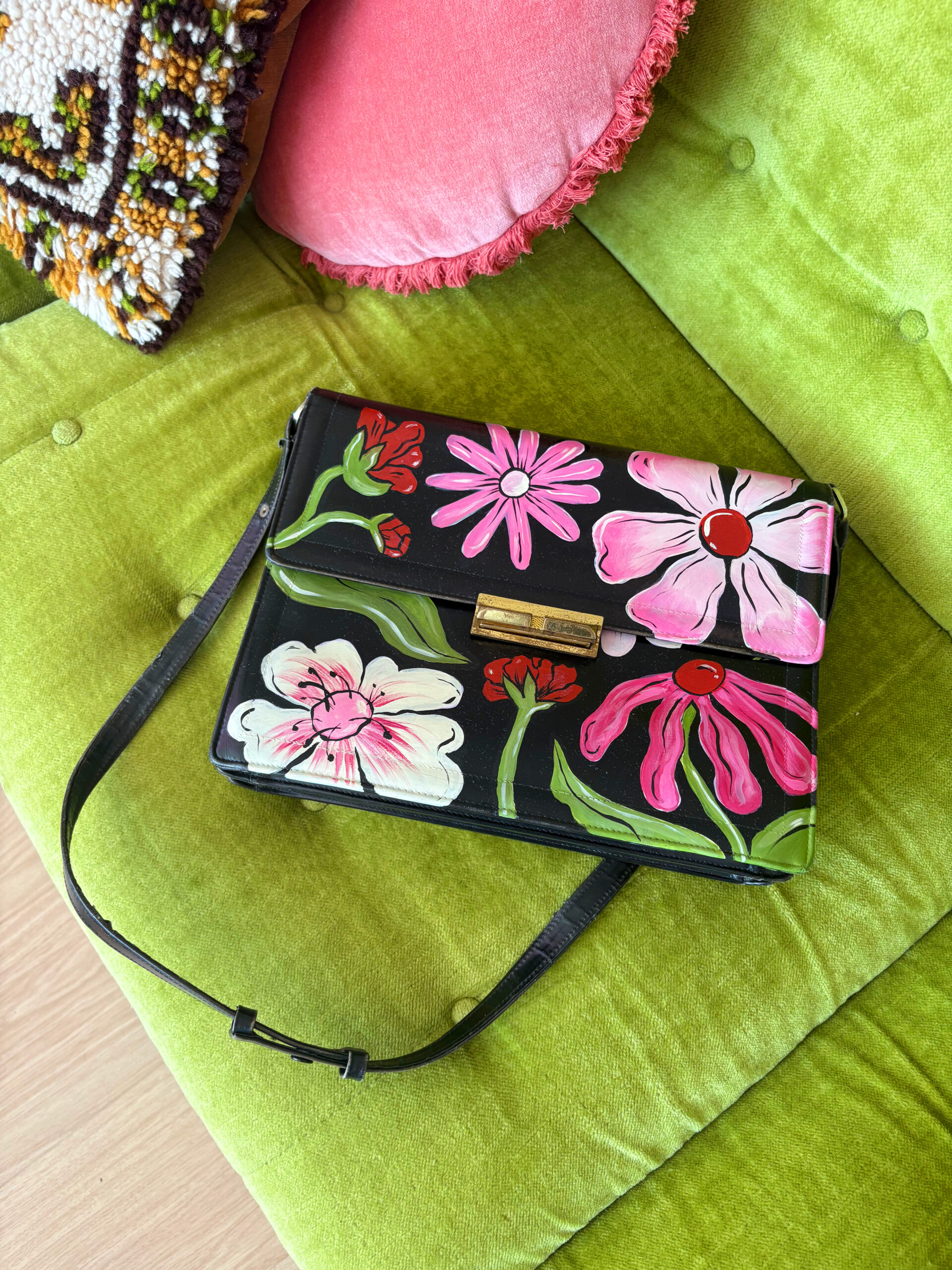 This unique vintage bag is painted by hand with lots of love and care. The bag itself is made from 100% real leather and can be closed with a clip.