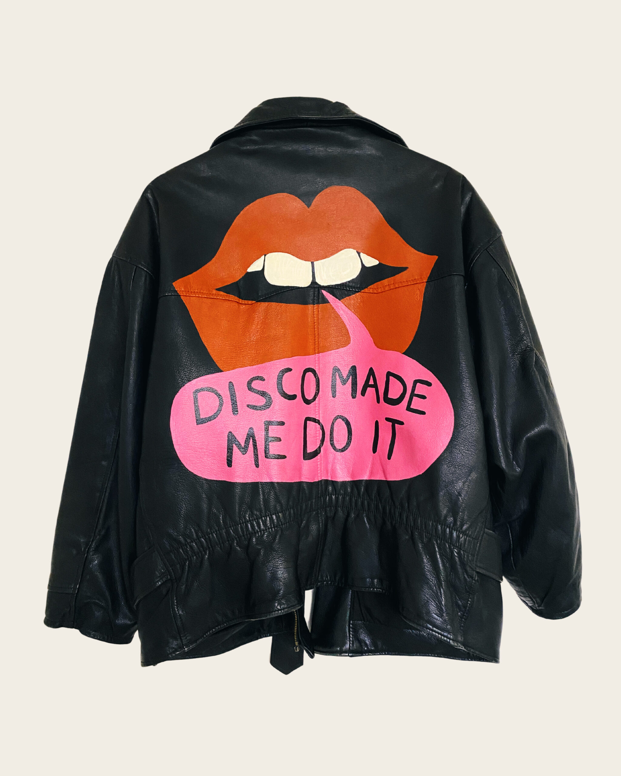 This one-of-a-kind jacket is made from 100% genuine leather (with a synthetic lining).