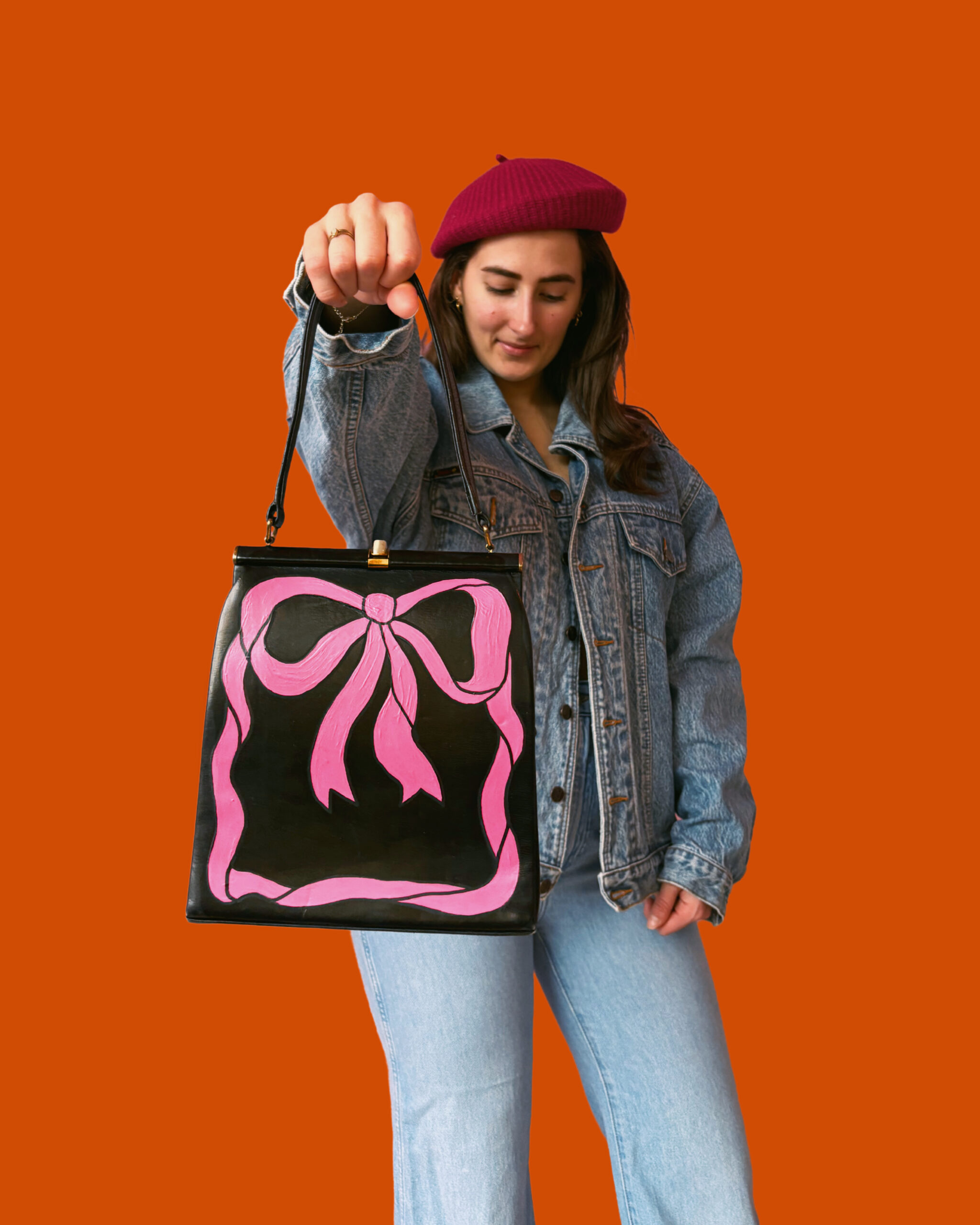 For the stylish, independent rebel who knows that fashion should be both bold and conscious. This one-of-a-kind vintage leather bag, hand-painted with a touch of edge and romance, is perfect for carrying your essentialsβ€”while making a statement.