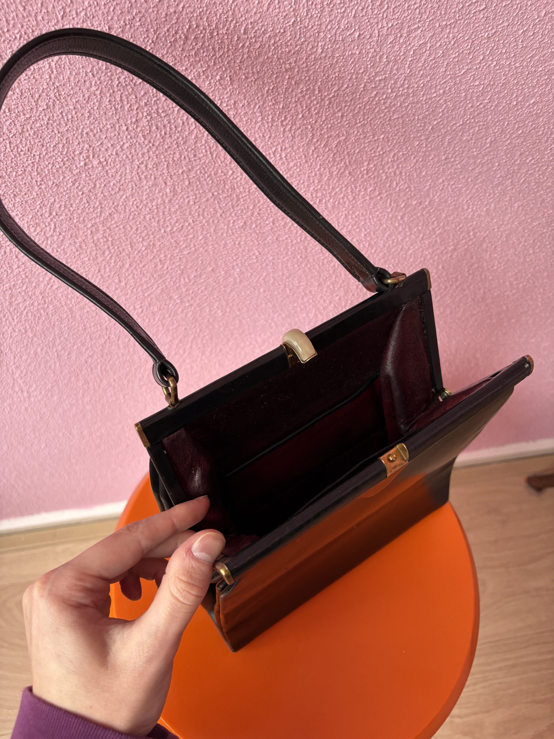 This unique vintage bag is painted by hand with lots of love and care. The bag itself is made from 100% real leather and can be closed with a clip.